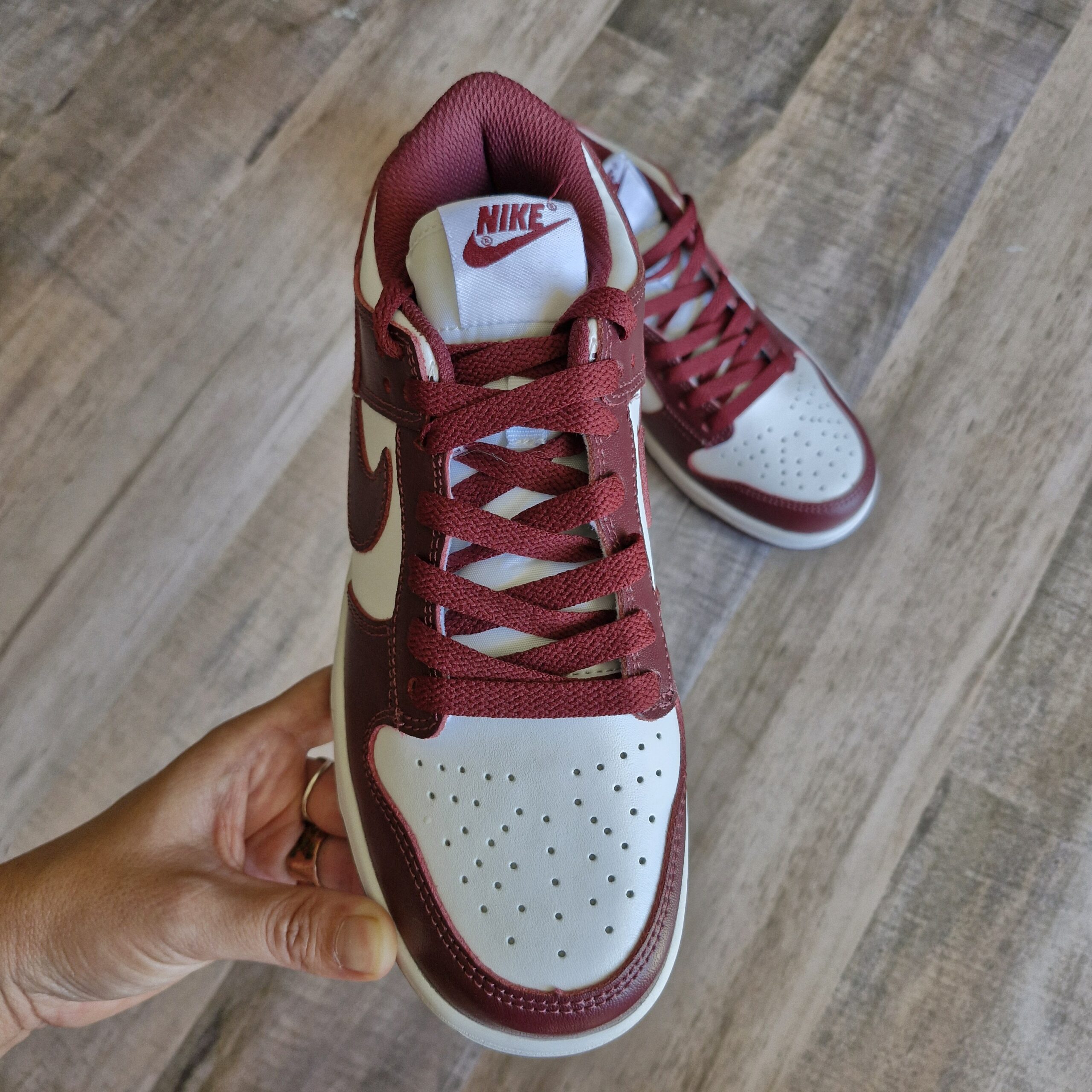 Nike Dunk Low blanca y bordo